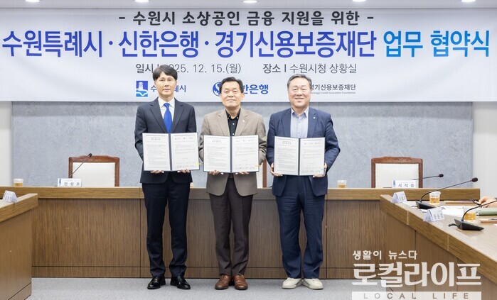 [수원=로컬라이프] 송준형 기자 = 수원특례시와 경기신용보증재단, 신한은행이 ‘소상공인 금융지원을 위한 업무협약’을 15일에 체결했다.