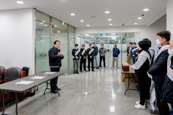 [오산=로컬라이프] 송준형 기자 = 이권재 오산시장은 27일, 이른 새벽, 묵묵히 운전대를 잡고 시민들의 하루를 함께 시작하는 버스운전종사자분들을 찾아 뵙고 안전운행을 당부드렸다.