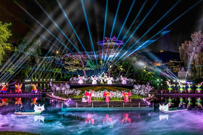 사진/지난해 수원화성문화제 중 용연에서 수중 퍼포먼스를 선보이는 ‘선유몽’ 공연 장면.(사진제공=수원시)