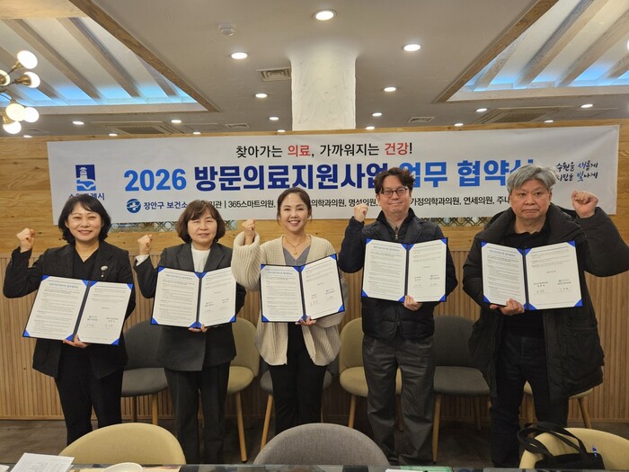 수원시 장안구보건소는 18일 지역 의료기관 6곳과 ‘방문의료지원사업 업무협약’을 체결하고, 거동이 불편한 의료 취약계층을 위한 재택의료 지원체계를 강화하기로 했다.