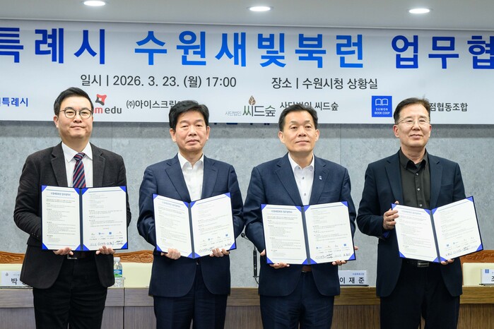 수원시·㈜아이스크림에듀·(사)씨드(Seed)숲·수원시서점협동조합, ‘수원새빛북런 업무협약’