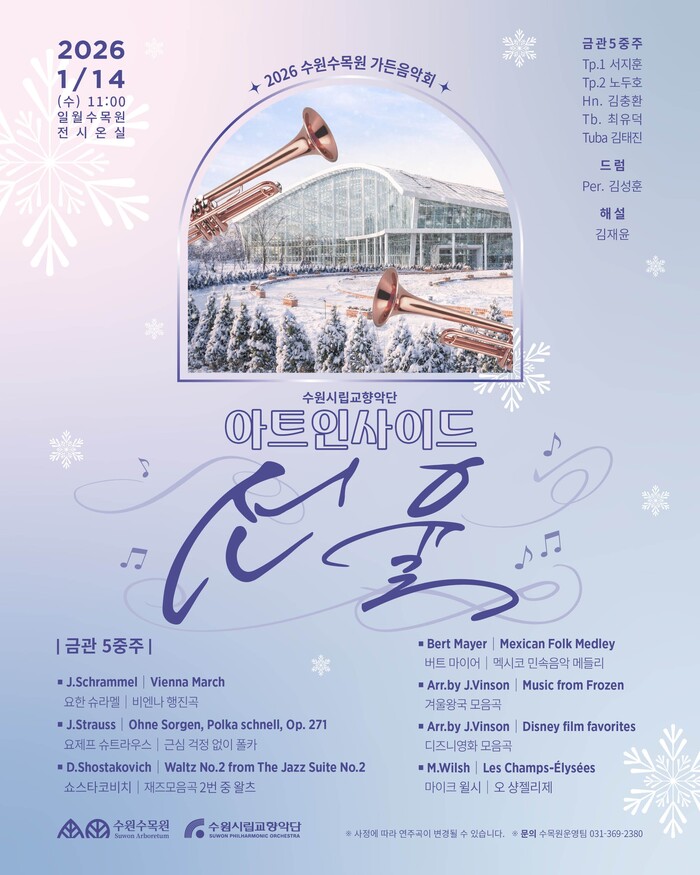 수원특례시(시장 이재준)는 1월 14일 일월수목원 전시온실에서 수원시립교향악단 아트인사이드 ‘선율’을 개최한다.