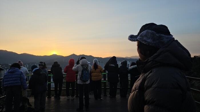 하지만 이날 한파에도 불구하고 떠오르는 해를 보기 위해 많은 분들께서 전망대를 찾아주셨는데, 눈이 부시게 떠오르는 해를 바라보며 2026년 한 해, 과천 시민 여러분 모두의 건강과 행복을 진심으로 기원했다고 말했다.