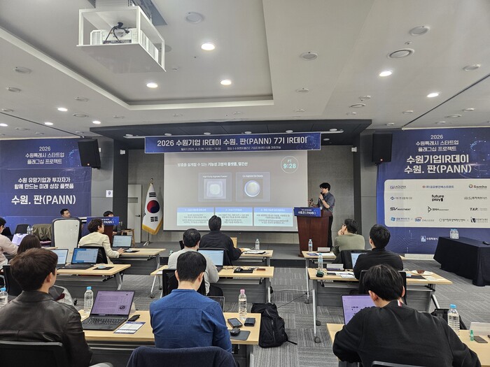 수원특례시(시장 이재준)가 2일 수원벤처밸리2 기업지원센터 대회의실에서 2026 수원기업 아이알(IR)데이 수원.판(PANN) 7기를 개최했다.
