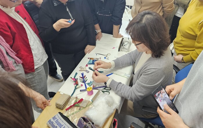 사진/수원시농업기술센터에서 규방공예 교육에 참여한 시민들이 실습하고 있다.(사진제공=수원시)