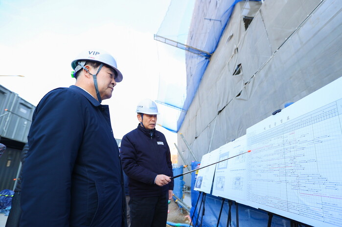 이날 김 시장은 공사 관계자들로부터 건립 공사 추진 현황을 보고받은 뒤 현장 안전관리 실태를 점검했다. 이어, 회의실, 사무실, 강당 등의 시설이 공사의 업무 기능을 충분히 수행할 수 있도록 조성되고 있는지 확인했다.