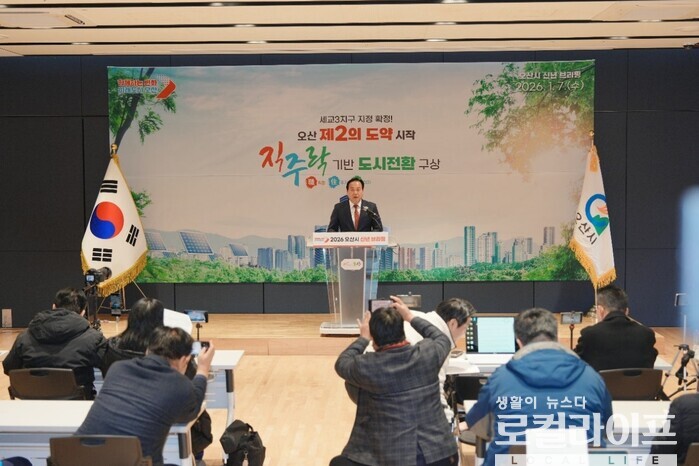 [오산=로컬라이프] 송준형 기자 = 오산시는 7일, 세교3신도시 지구지정을 계기로 한 향후 시정 운영 방향과 인구 50만 경제자족도시로 도약하기 위한 중장기 도시 비전을 제시했다.
