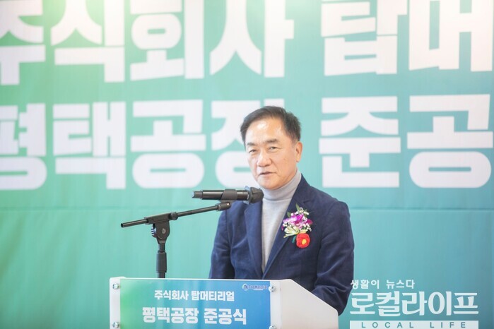 또한 “지역 내 일자리 창출과 산업 생태계 확장에도 기여할 것이다”라며 “탑머티리얼 평택공장 준공을 진심으로 축하드리며, 평택에서의 경영 활동을 앞으로도 응원하겠다”고 밝혔다.