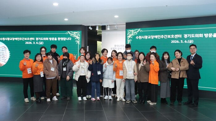 경기도의회 더불어민주당 최종현 대표의원(수원7)은 6일(금) 경기도의회를 방문한 수원시광교장애인주간보호센터 이용자와 박희붕외과 자원봉사단 회원들을 환영하고, 힘찬 응원을 보냈다.
