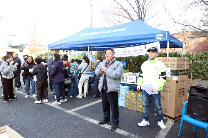 사진/이재식 수원특례시의회 의장이 세류3동 정월대보름 척사대회에서 주민들에게 인사말을 하고 있다.(사진제공=수원시의회)