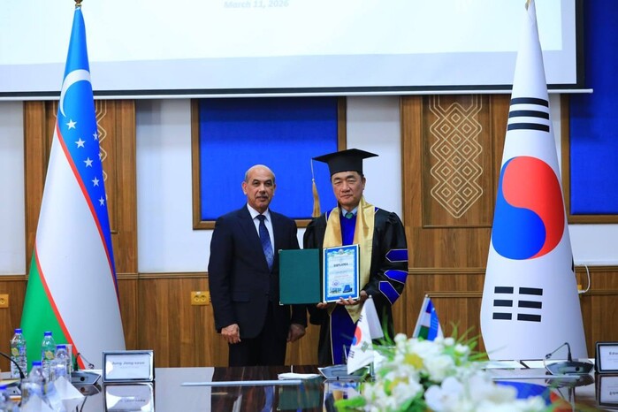 [평택=로컬라이프] 송준형 기자 = 정장선 평택시장은 우즈베키스탄 명문 국립 타슈켄트 경제대학에서 명예박사를 받고 명예교수로 임명되었다.
