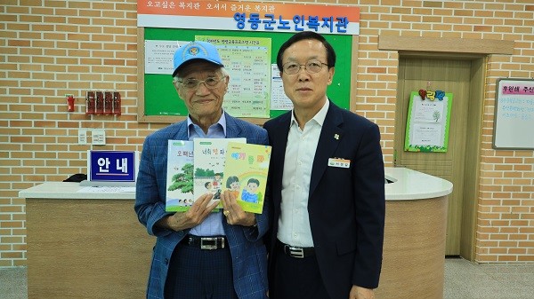 영동군노인복지관 가요반과 한국화반에 참여중인 황철용 씨는 최근 소장하고 있던 동시집 등 책 100여권을 노인복지관에 기탁했다.