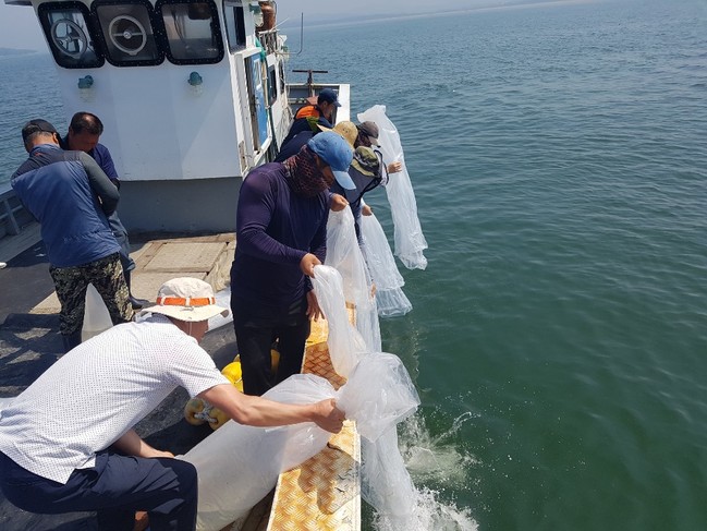 올해는 보령·서천·서산·태안·당진지역 연안에서 진행하며, 4일 보령·서천지역을 시작으로 오는 18일까지 시·군당 10만 마리씩 방류한다.
