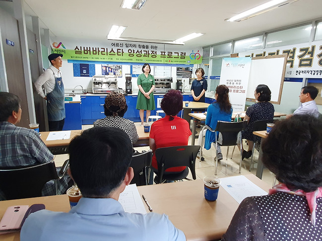 노인사회활동지원 사업의 일환인 실버바리스타 양성과정 프로그램은 어르신들에게 사회참여 기회를 확대하고 자신감·자존감을 향상시켜 어르신 일자리 창출을 위해 운영된다.