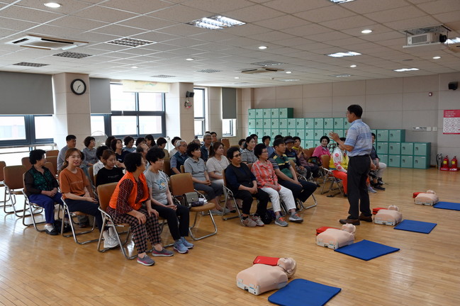 옥천군보건소는 5일 옥천군다목적회관 5층 대회의실에서 심폐소생술 교육생 130여명을 대상으로 응급처치 대처능력과 급성 심정지 환자의 생존율 향상을 위한 2019년 구조 및 응급처치 교육’을 실시했다.