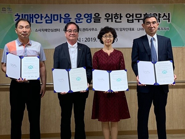 소사보건소 등 협약기관은 앞으로 치매조기검진, 교육 및 캠페인 등 치매안심마을 운영을 위해 상호 협력하기로 약속했으며, 이선숙 소사보건소장은 “치매친화적 인식을 확대하는 데 지역주민들이 함께 협조하고, 지역주민 모두가 치매에 대한 두려움에서 벗어나 더불어 살아가는 치매안심마을이 되길 바란다”고 말했다.