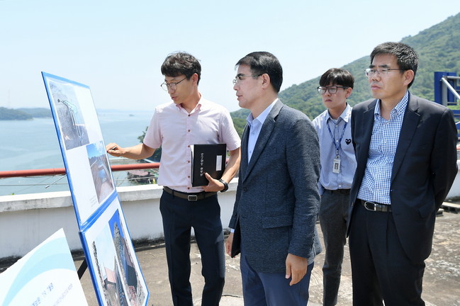 장충남 남해군수가 지난 4일 남해대교 인근 구 남해각휴게소에서 추진 중인 남해각 재생사업 현장을 방문해 지역관광자원 개발사업 현안을 점검했다.