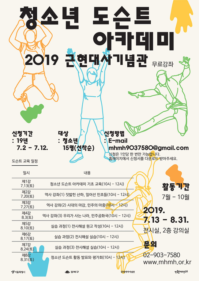 역사에 관심 있는 만 14~18세 청소년이면 누구나 참여할 수 있다. 강북구 근현대사기념관 홈페이지에서 신청서를 내려받아 작성 후 이메일로 제출하면 된다.