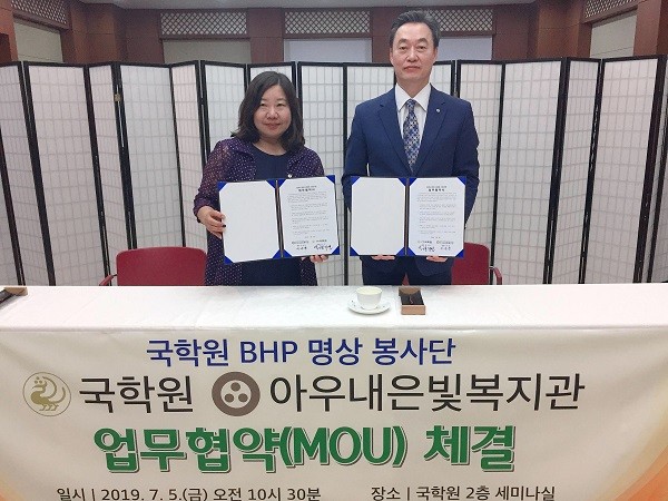 아우내은빛복지관과 사단법인 국학원이 지난 5일 국학원 세미나실에서 어르신 심신단련 체험 교육, 국학교육 추진으로 복지사회를 건설하기 위한 업무협약을 체결했다.
