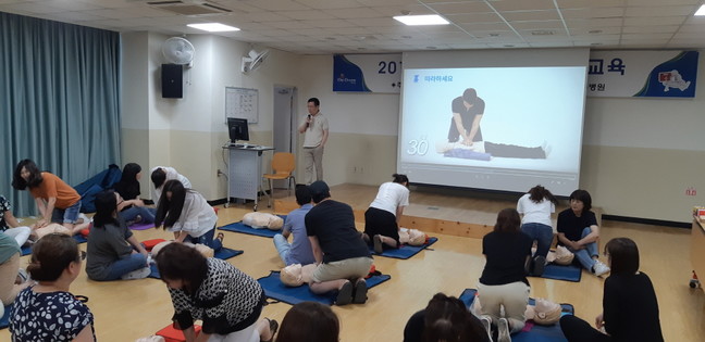 이번 교육은 가정이나 주변에서 접할 수 있는 심정지환자가 발생했을 시 당황하지 않고 현장에서 119 구조대에 신고함과 동시에 먼저 심폐소생술을 실시하는 방법과 구조 및 응급처치를 할 수 있는 교육으로 진행됐다.