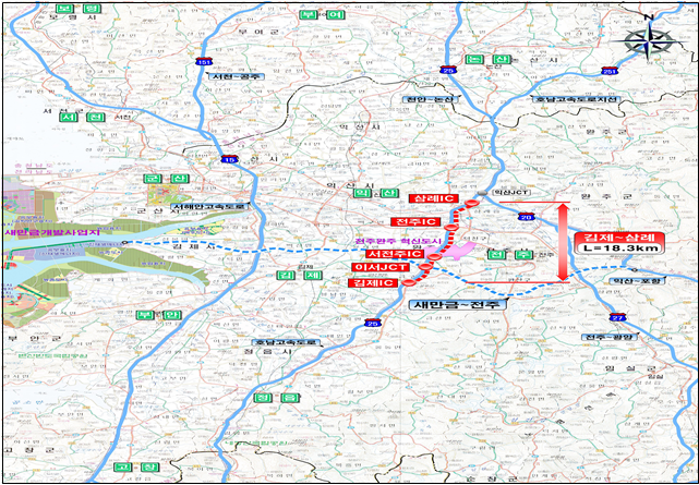 그동안 전라북도는 새만금·혁신도시 개발, 새만금부터 전주 고속도로 건설에 따른 교통수송 처리능력 제고를 통한 국토의 균형발전 및 지역개발 촉진과 차로수 감소에 따른 병목현상 발생이 예상됨에 따라 도로확장 필요성에 대해서 전북연구원과 공조해 국회를 비롯해 국토교통부, 기획재정부에 타당성을 제시하는 등 지속적으로 건의해 왔다.