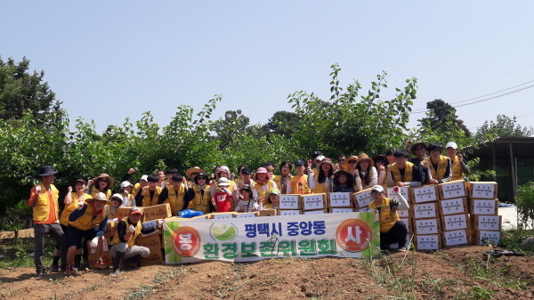 평택시 중앙동 환경보존위원회는 지난 6일 중앙동 환경보존위원회 위원과 학생 40여명, 원유철 국회의원, 이병철 중앙동 주민자치위원장 등이 참여한 가운데 이병철 주민자치 위원장이 소유한 장안동 소재 텃밭에서 사랑의 감자 수확 행사를 가졌다.