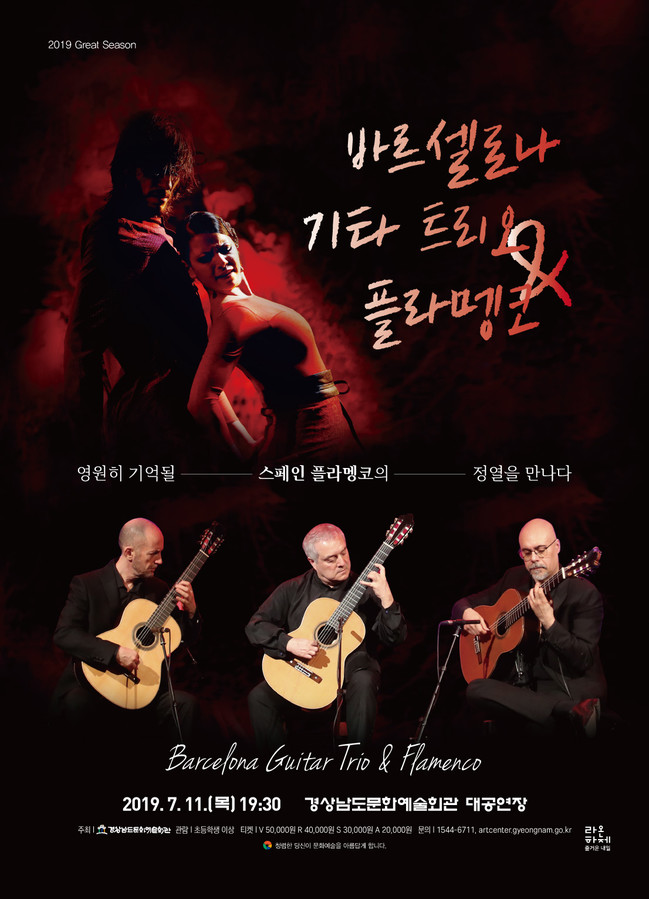 경상남도문화예술회관은 오는 11일 오후 7시 30분 대공연장에서 ‘바르셀로나 기타 트리오&플라멩코’ 공연을 개최한다.