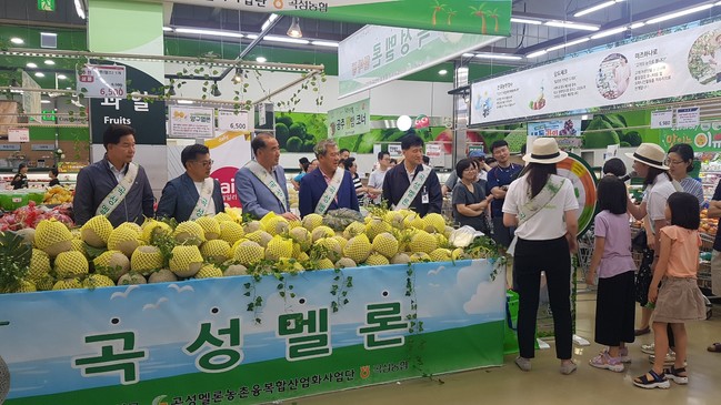 곡성멜론농촌융복합산업화사업단은 지난 6월 14일부터 오는 14일까지 약 한 달 동안 농협하나로클럽 양재점 판촉전을 진행하고 있다. 행사에는 곡성농협의 주도 하에 계약재배로 생산되고, 최첨단 APC에서 비파괴 당도측정기를 사용해 공동선별한 최고품질의 곡성멜론을 선보이고 있다.