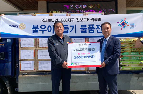국제로타리클럽 3630지구 진보면 로타리클럽은 지난 5일 지역 불우이웃 돕기로 300만원 상당의 라면, 쌀 등 후원물품을 청송군에 전달했다.