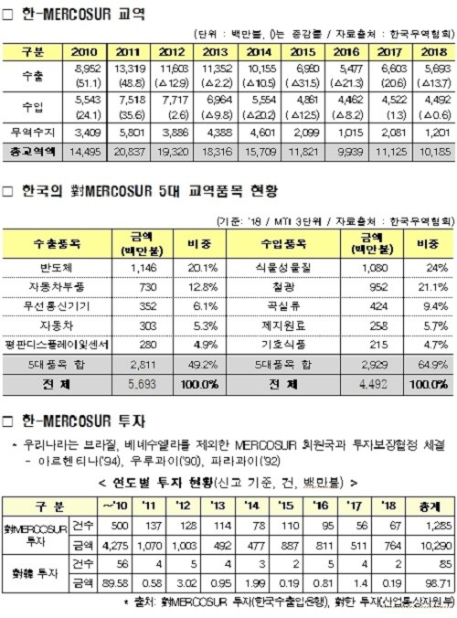 특히, 우리 기업의 對메르코수르 주력 수출상품에 대한 시장개방 협상을 본격화해, 향후 남미 시장에 다른 나라 기업들보다 유리한 조건으로 진출할 수 있는 기반을 마련하는데 협상력을 집중할 계획이다.