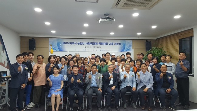 파주시는 지난 8일 파주시 사회적경제 희망센터에서 교육생 및 내빈 등 50여명이 참석한 가운데 ‘2019년 파주시 농업인 사회적 경제 역량강화 아카데미’ 개강식을 가졌다.