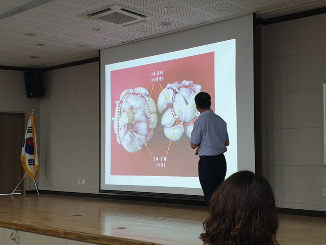 특히, 2019년 고흥 대서마늘 생육후기에 발생한 수침상, 갈변, 연화, 함몰 등 이상증상 발생 원인에 대한 자세한 설명과 재배관리요령에 대해서 중점적으로 이루어졌다.