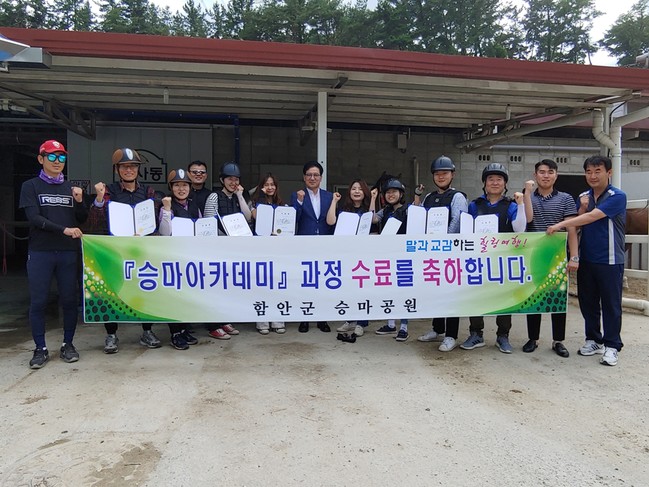 함안군 승마공원은 지난 7일 ‘제6기 승마아카데미’ 과정을 이수한 교육생 10명을 대상으로 수료식을 개최하고 수료증을 수여했다.