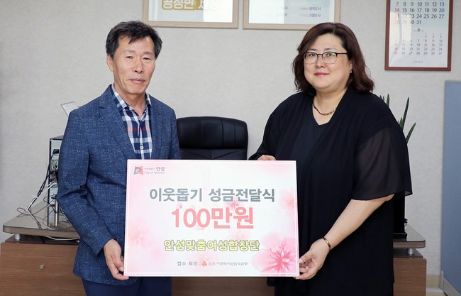 안성시 안성맞춤여성합창단에서 9일 이웃돕기성금 100만원을 안성시에 기탁했다.