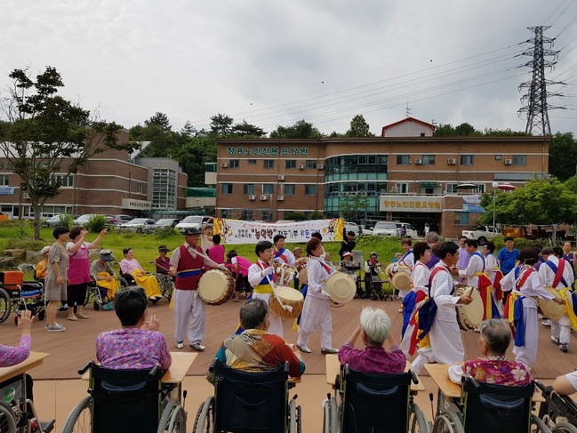 농악반 조연희 강사와 수강생 20명은 거동이 어려워 노인요양시설에서 생활하는 어르신을 위해 흥겨운 공연을 펼쳤다.