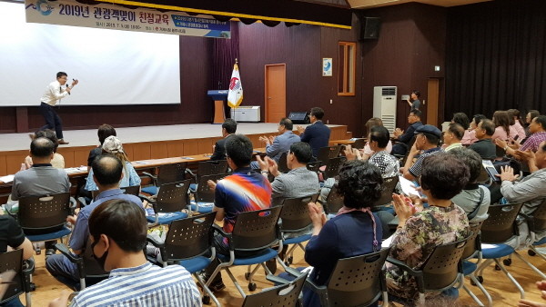 2부 친절교육은 심리검사연구소 인싸이트 창원, 경상남도 인재육성개발원장진석 대표의‘마음을 여는 사람, 지갑을 여는 사람’이라는 주제로 관광객을 맞이하는 자세에 대해 관광사업장 맞춤형 교육이 진행됐다.