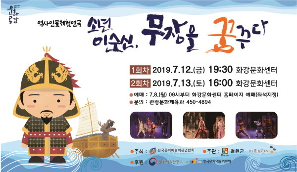 ‘소년 이순신, 무장을 꿈꾸다’는 무료공연이며, 화강문화센터 홈페이지에서 예매 및 좌석지정이 가능하다.