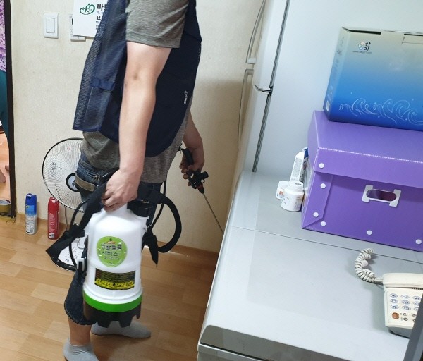 생활돌봄서비스 중 방역소독서비스가 필요한 취약 계층 가구에 방역소독을 진행하고 있다.