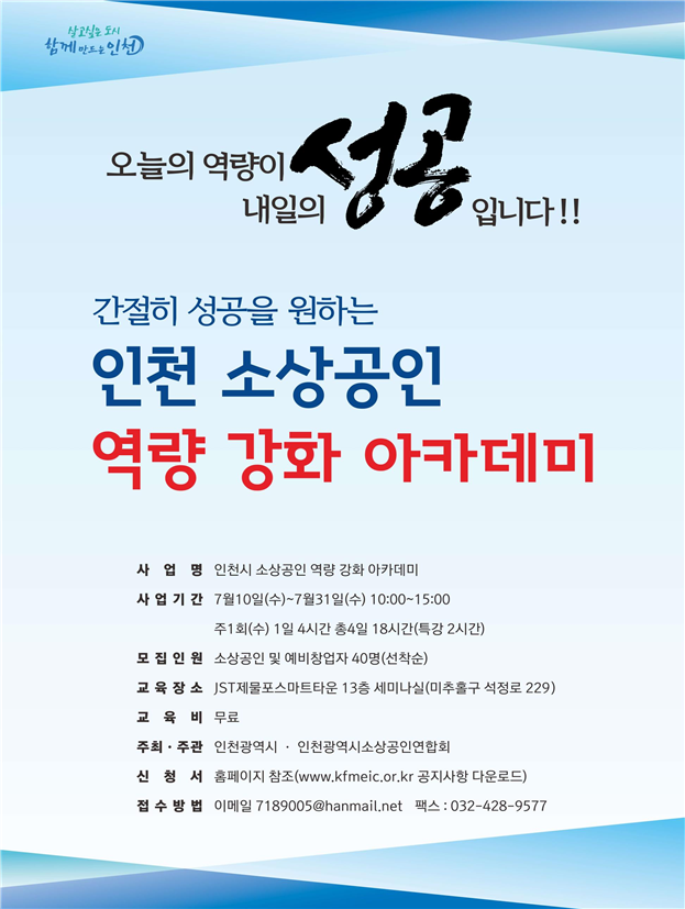 오늘의 역량이 내일의 성공 인천 소상공인 아카데미