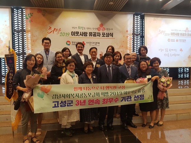 고성군은 10일 오전 11시, 창원 웨딩그랜덤에서 열린 경남사회복지공동모금회 주관 ‘희망 2019 이웃사랑 유공자 포상식’에서 최우수 기관상을 수상했다.