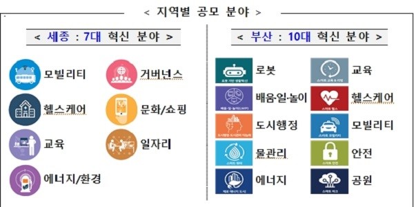 공모 방식은 기업들이 자유롭게 창의적인 아이디어를 개진할 수 있도록 자유 공모로 진행하되, 국가 시범도시 시행계획의 핵심 가치와 주요 내용을 반영해 세종과 부산의 공모 대상 분야를 도출하였으며, 기업들은 희망하는 지역과 분야를 선택해 관련된 서비스를 신청하면 된다.
