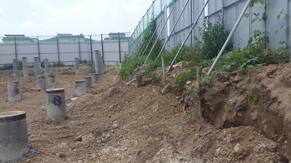 공사현장모습. 울타리 경사면 부실우려. 포장조치