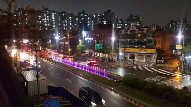성동구에서 동호로 옥수터널 중앙분리대 녹지대에 50미터 규모의 분수를 신규설치 했다. 여름철 무더위를 식혀줄 분수와 꽃과 수목이 어우러진 수경시설을 조성하며 이달부터 지역 내 총 9개소의 수경시설을 가동하게 됐다.