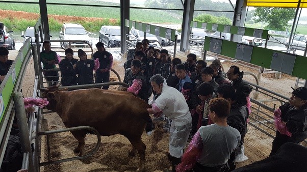 이날교육은 한우심화과정 학생들이 어려움을 겪고 있는 자가수정 실습을 위해 영암축협의 협조를 받아 인공수정 전문가와 함께 실습용소를 이용해 현장실습교육으로 이루어 졌다.