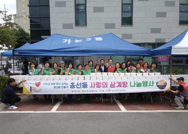 한편, 지난 4월 고추장, 5월 계절김치에 이어 이번 삼계탕 나눔행사를 실시한 흥선동 새마을부녀회는 매년 다양한 나눔행사를 통해 복지사각지대에 있는 소외된 이웃들과 가속화되고 있는 고령화 사회의 독거노인을 위한 노인복지에 기여하고 있다.