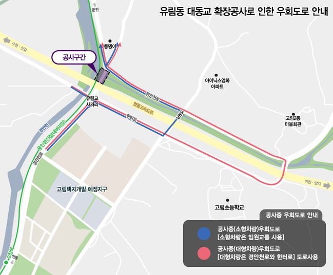 용인시 처인구는 확장공사가 진행 중인 유방동 1007-2번지 일원 대동교의 차량 전면통제 기간을 당초 8월말에서 9월말까지로 1개월 연장한다고 11일 밝혔다.