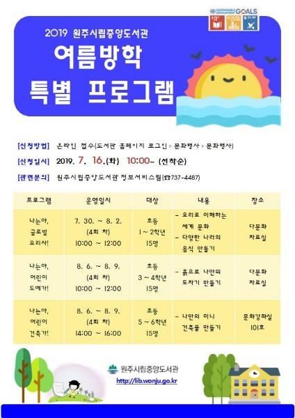원주시립중앙도서관이 여름방학을 맞아 어린이와 청소년을 대상으로 특별 프로그램을 운영한다.