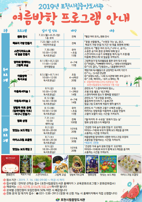 포천시 시립도서관이 여름방학을 맞이해 다양한 독서문화프로그램을 운영한다고 밝혔다.
