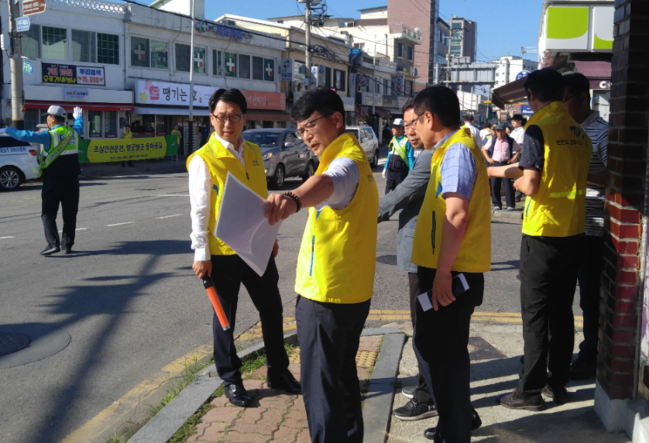 또한 최종환 파주시장은 이형수 파주교육지원청장, 용을미파주초등학교장 등 학교관계자와 함께 파주초등학교 주변 도로 및 보도를 합동 점검했다. 파주시는 이번 합동 점검에서 발견된 도로 및 보도 파손, 노후화된 횡단보도 등 노면표시를 이달 말까지 신속히 정비할 계획이다.