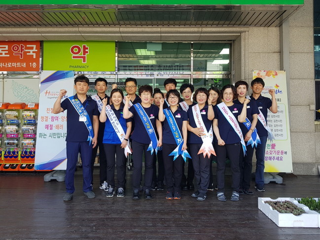 또한, 대형마트 입구에 ‘Happy together김천’운동 및 ‘김천愛 주소갖기운동’배너를 비치해 방문하는 시민들이 스스로 동참함과 동시에 일상생활 속 기초질서 지키기 생활화가 이루어질 수 있도록 분위기를 조성하는 데 앞장섰다.